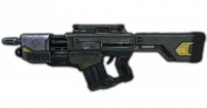 此武器在近距离时极具杀伤力,升级后可2到3枪全中下杀死高级异形生命体。
